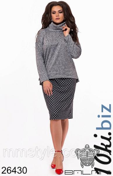 Размер на фото: 48 Материал: трикотаж, юбка в поясе на резинке Цвет: серый Длина изделия: юбка 66 см. кофта 64 см. рукав 43/38 см.