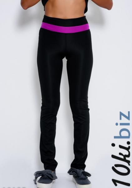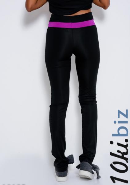 Черные облегающие зауженные штаны высокой эластичности с высокой посадкой на талии. Штаны на удобной широкой резинке с яркой фиолетовой эластичной вставкой вокруг пояса. Модель идеальна для занятия спортом или активного отдыха.
