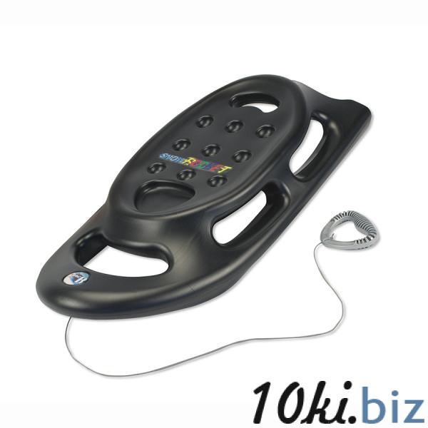 Снизу расположены металлические полозья, которые улучшают скольжение и защищают санки от повреждений.