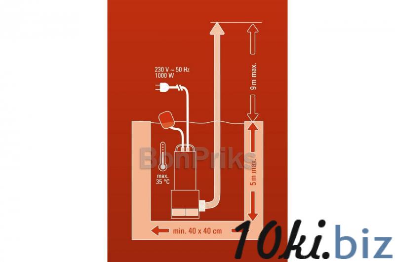 Макс. высота подачи: 9м. Макс. глубина погружения: 5м. Температура воды: до 35°C. Макс. пропускаемых частиц: Ø 20мм. Точка включения: ок. 50 см. Точка выключения: ок. 5 см |