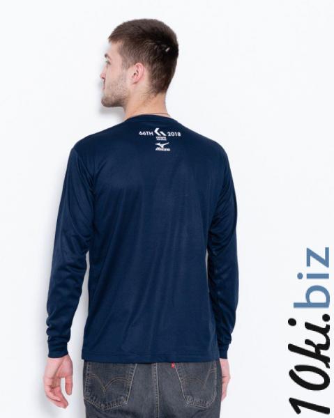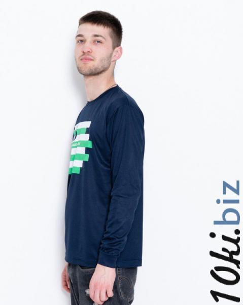 Темно-синий тонкий лонгслив с перфорацией и длинными удобными рукавами. Модель прямого кроя с принтом на груди и спине оснащенная полукруглой горловиной с манжеткой.