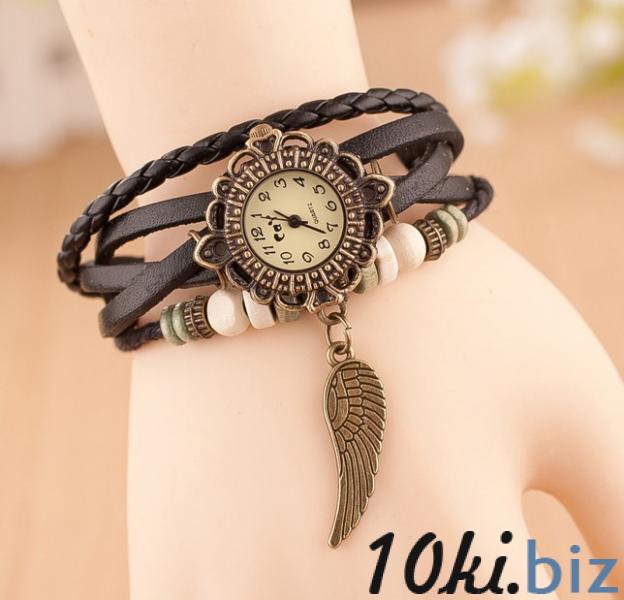 Часы-браслет с подвеской Крыло черные Женские наручные часы в Украине