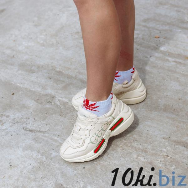 Взуття Gucci Rhyton Gucci Beige 5,5Модний дім Gucci займається виробництвом одягу і аксесуарів, косметики і парфумерії преміум-сегмента. Фірмовий стиль бренду - яскравий і розкішний - можна охарактеризувати як справжній італійський шик. В останні роки дизайнери компанії випускають авангардні колекції на стику люкса і вуличної моди і активно беруть участь в колабораціях з сучасними художниками та модельєрами. У лінії чоловічого взуття Gucci представлені високі черевики, класичні лофери, Мюлі, кеди і кросівки на шнурівці. Взуття декорована штучним хутром, золотистими пряжками з логотипом, а також нашивками і аплікаціями у фірмовій червоно-зеленої забарвленням.