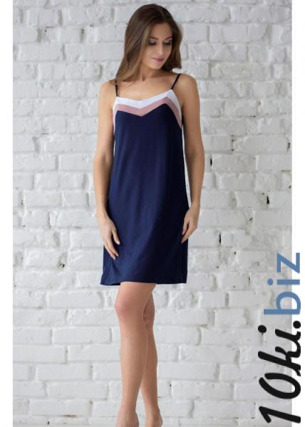 Платье пошито в прямом, слегка полуприталенном фасоне, на тонких лямочках и V-образным лифом.