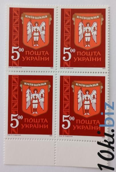 1993 № 36 квартблок почтовых марок Герб Киевщины номинал 5-00 Филателия в Украине