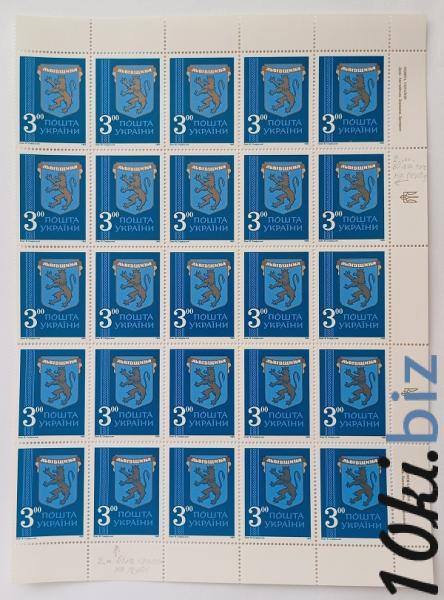 1993 № 35-36 часть листа почтовых марок Герб Львовщины номинал 3-00, Герб Киевщины номинал 5-00 Филателия в Украине