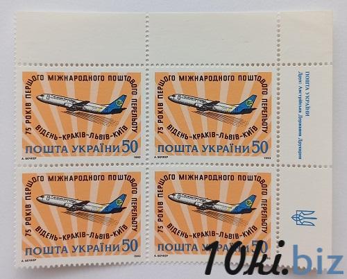 1993 № 39 угловой квартблок почтовых марок Самолет 75 лет первого международного почтового перелета Виден-Краков-Львов Филателия в Украине