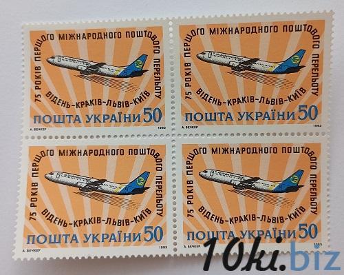 1993 № 39 квартблок почтовых марок Самолет 75 лет первого международного почтового перелета Виден-Краков-Львов Филателия в Украине