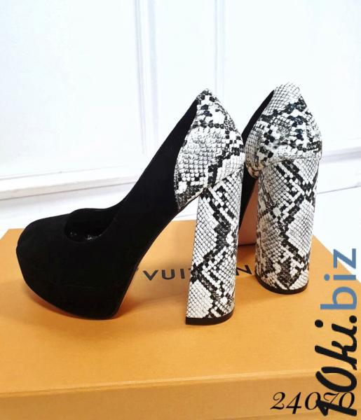 Женские замшевые туфли на высоком каблуке с принтом питона.