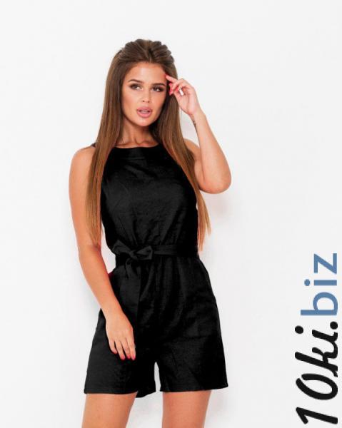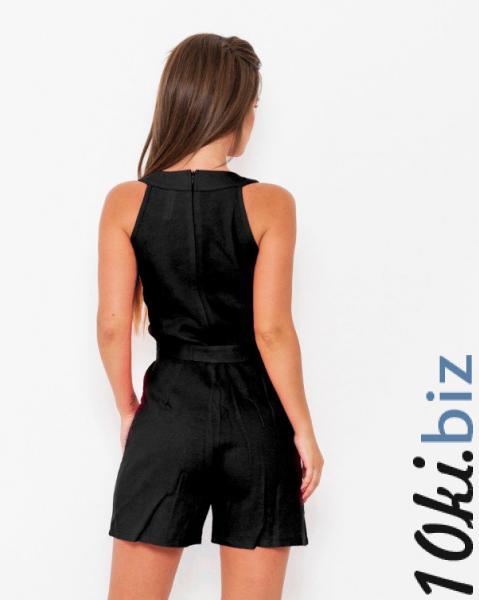 Черный повседневный летний комбинезон с короткими шортиками и молнией на спинке выполненный из льна со съемным пояском. Комбинезон без рукавов оснащен округлой манжеткой на горловине и боковыми карманами.