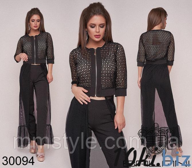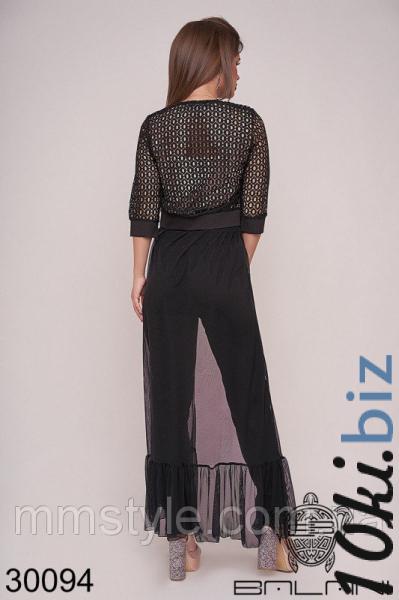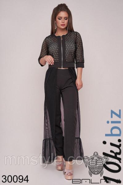 Размер на фото: 42 Материал: костюмка, сетка макромэ, брюки сзади в поясе на резинке Цвет: черный Длина изделия: 142 см. рукав 41/29 см. брюки 98/79 см.