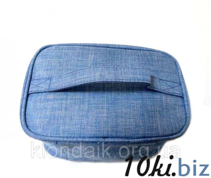 Косметичка легкая по весу и компактная. На ее крышке расположена небольшая ручка для удобной переноски. Прочная качественная ткань, из которой выполнено изделие, обеспечит долгую службу косметички.