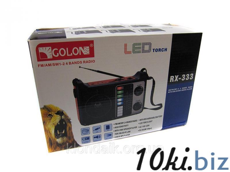 Радиоприемник Golon RX-333 — портативное устройство со встроенным фонариком, Bluetooth ,USB, радио. Система предназначена для приема всех радио частот и воспроизведения музыки c USB флеш накопителя и SD карт, имеет высокое качество звука. Из дополнительных преимуществ, также имеется телескопическая антенна, встроенный фонарик, Bluetooth подключение и широкий ремешок для удобной переноски на плече. Питание приемника производится от сети 220v 50Hz, от встроенного аккумулятора или 4-х батареек 1,5V типа UM-1 К20/D (в комплект не входят). Прекрасное звучание, простое управление и удобство в использовании порадует вас дома или на природе.