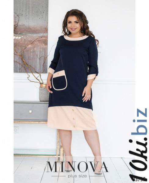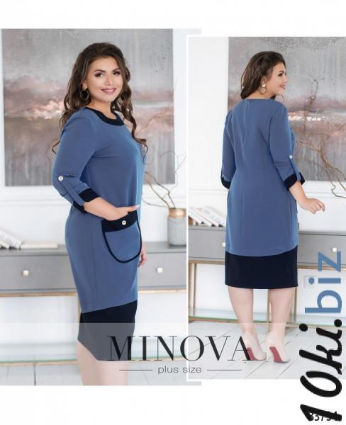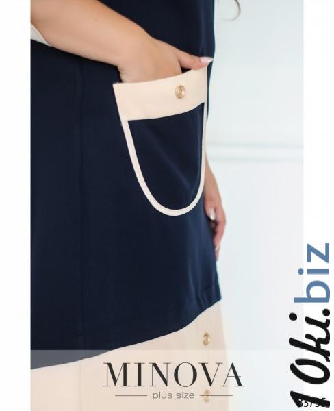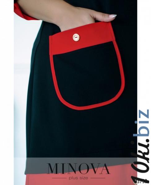 Очаровательное в своей оригинальности платье батал отличается нежностью, строгостью и экспериментамис декором. Сочетание двух цветов создаёт гармоничный образ, при этом акценты расставлены на всех значимых местах. Вставки контрастной ткани украшают широкий полукруглый вырез горловины, широкую полосу подола, накладной карман и рукава длиной ¾, которые можно регулировать с помощью ленты и пуговки. На подоле – три декоративных пуговицы, одна – на кармане. Платье застёгивается на вшитую по спинке «молнию», на груди – вытачки. Материал плотный, но лёгкий, не просвечивается и не тянется. Идеально сядет на «прямоугольную» фигуру или тип «яблоко» или «перевёрнутый треугольник».