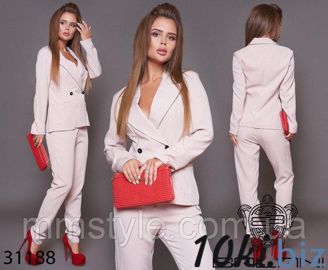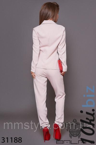 Размер на фото: S Материал: костюмка, брюки в поясе с потайной змейкой Цвет: бежевый Длина изделия: пиджак 62 см. рукав 62/49 см. брюки 107/79 см.