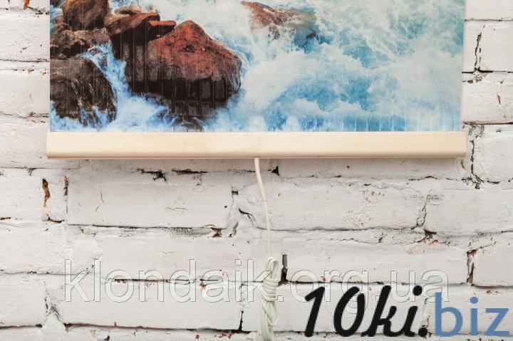 - Крепится на стену в вертикальном положении с помощью декоративного шнура, который размещен на верхней планочке;