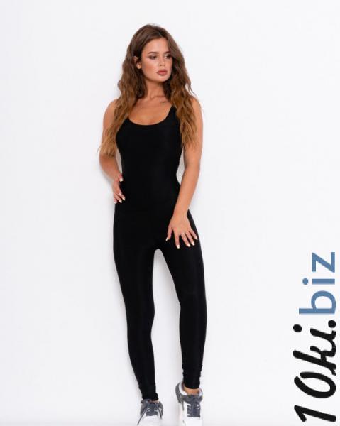 Черный эластичный спортивный комбинезон с брюками облегающего кроя. Модель декорирована салатовыми широкими перекрестными на спинке бретелями и фиксаторами на вырезе спинки. Модель выгодно подчеркивает все достоинства фигуры и не стесняет движений.
