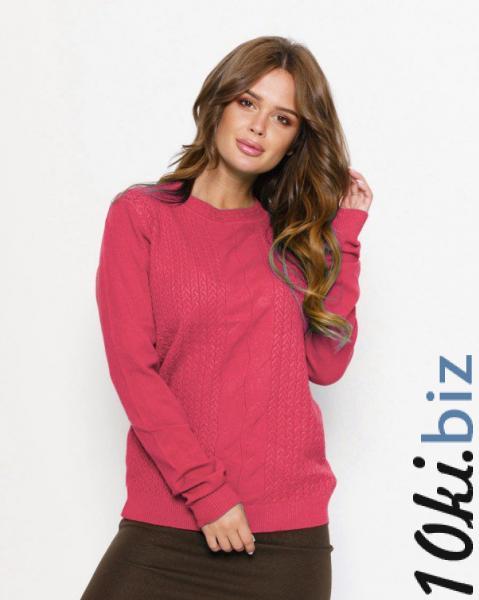 Коралловый ангоровый джемпер с фактурной эластичной манжеткой на горловине. Свитер с длинными свободными рукавами на манжетах имеет прямой слегка присборенный к низу крой. Модель выполнена в комбинированной технике вязки с передней частью выполненной методом кос "Аран".