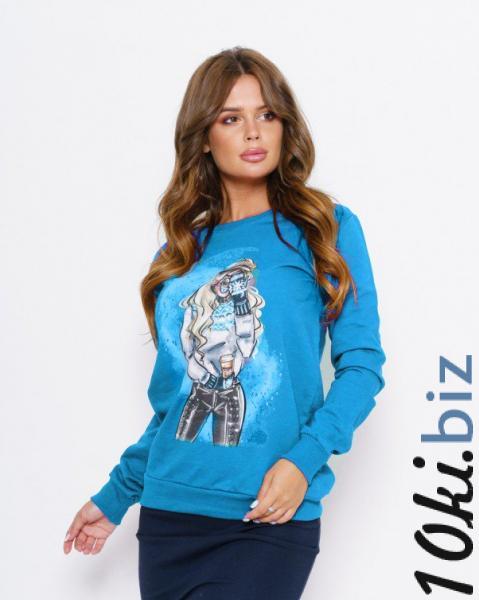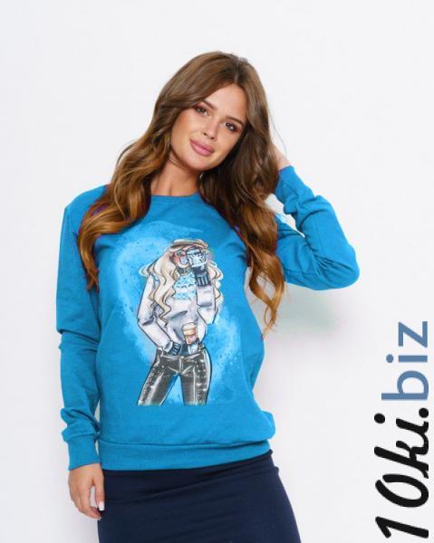 Голубая толстовка выполненная из практичной трикотажной двухнити с крупным ярким принтом спереди. Толстовка имеет прямой присборенный нижним манжетом крой с удобными длинными рукавами и полукруглой горловиной.