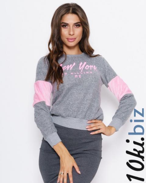 Серая демисезонная толстовка из ангорового трикотажа на тонком флисе. Модель прямого кроя с длинными рукавами и манжетами на срезах и пройме горловины. Толстовка декорирована надписями и вставками из контрастного велсофта "травки" на рукавах.