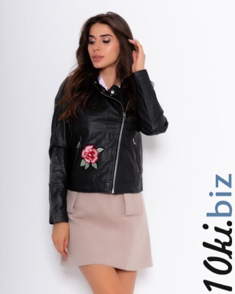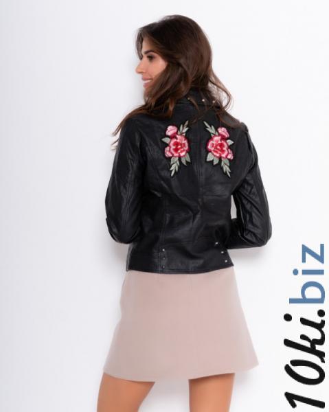 Черная куртка модели косухи выполненная из мягкой эко-кожи с шипами-заклепками на воротнике. Изделие на молнии оснащено нижним подкладом и длинными рукавами. курточка с молниями на карманах декорирована яркими крупными вышитыми цветами.