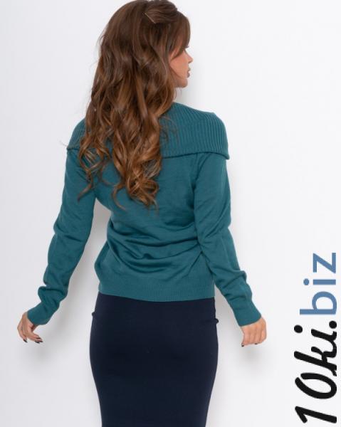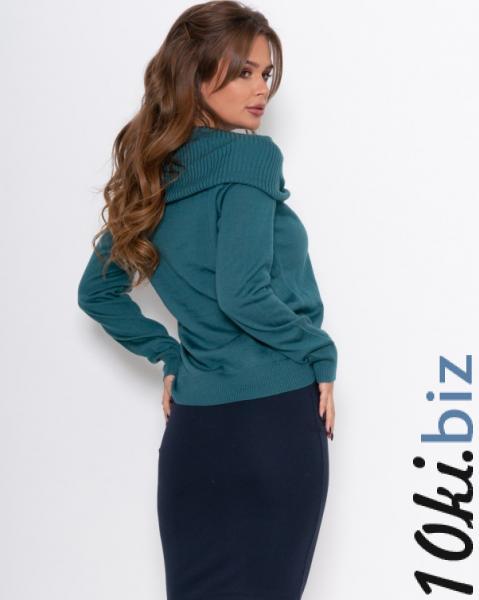 Ангоровый свитер зеленого цвета с ажурной тонкой вставкой и объемным фактурным хомутом-отворотом. Модель высокой эластичности, прямого облегающего кроя оснащена длинными рукавами и манжетами.