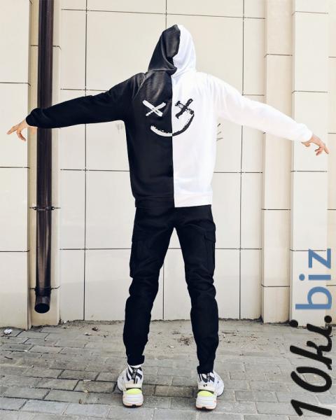 Глубокий капюшон, два кармана, длинный чёрно-оранжевый шнурок, всё как нужно