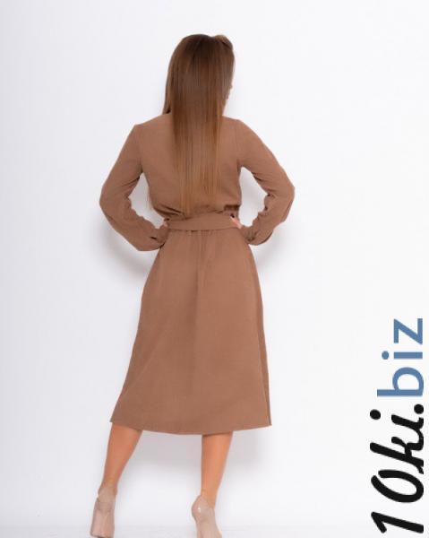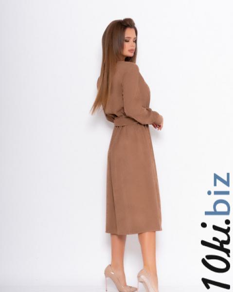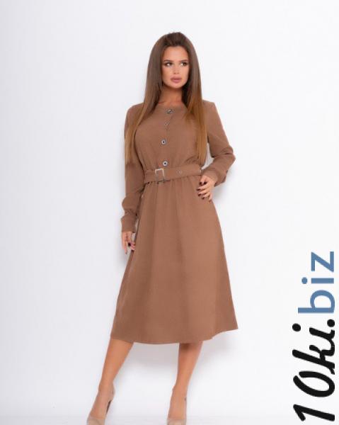 Бежевое однотонное демисезонное платье миди длины выполненное из трендового вельвета. Модель прямого кроя с потайной резинкой на талии и укороченной планкой на пуговицах. Платье с длинными рукавами на манжетах оснащено съемным поясом с пряжкой.
