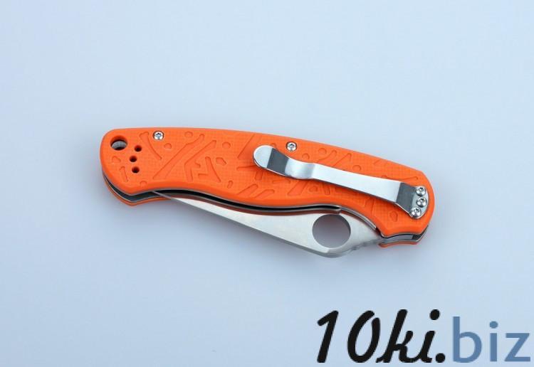 Из общей длины ножа 122 мм приходится на рукоятку, которая изготовлена из стеклопластика G10. Это современный композитный материал, который наделен высокой прочностью и долговечностью, а также хорошо себя зарекомендовал при эксплуатации ножа в условиях жары или морозов. Стеклопластик не перегревается и не сильно охлаждается, а потому держать нож в руках будет комфортно в любое время года. Чтобы он не выскальзывал из мокрых ладоней, поверхность рукоятки фактурная. Что касается цвета, то покупатели могут выбрать между черным, зеленым и оранжевым вариантом. В каждом из случаев на рукоятке имеется клипса для фиксации ножа на поясном ремне или кармане.
