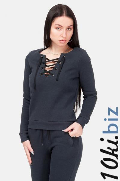 Женский свитшот темно-серого цвета с начесом и люверсами