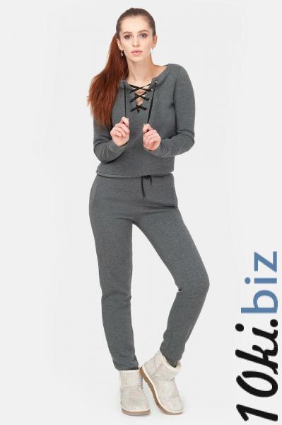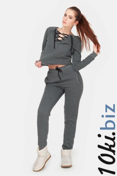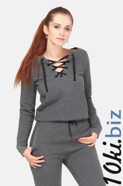 Женский свитшот темно-серого цвета с начесом и люверсами