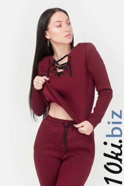 Женский свитшот цвета марсала с начесом и люверсами