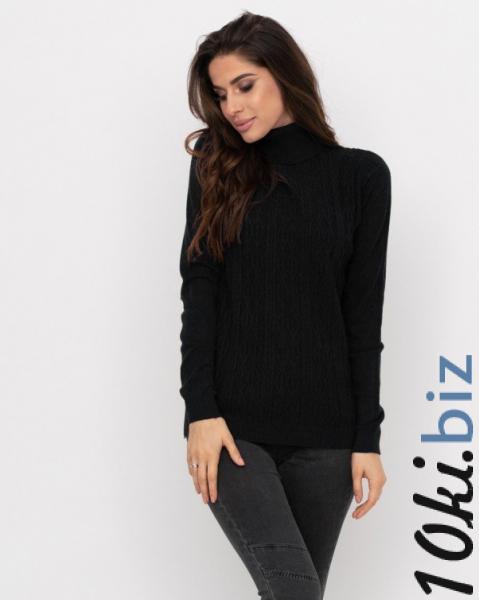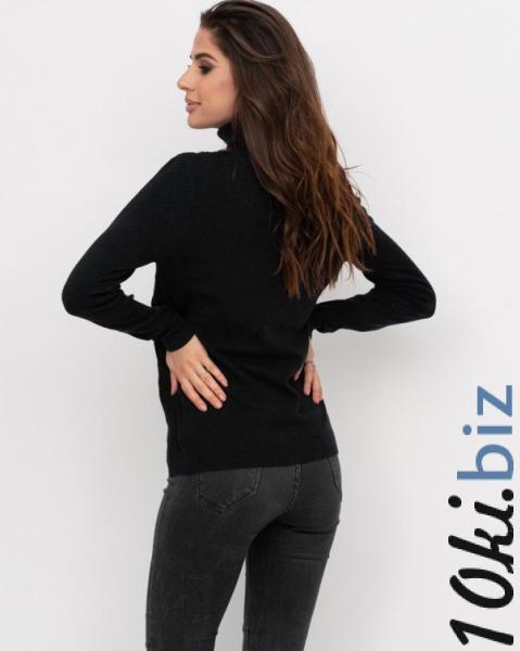 Ангоровый гольф объемной вязки черного базового цвета. Модель прямого традиционного кроя с воротником-гольфом и длинными рукавами прихваченными манжетами.