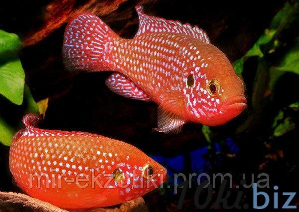 Хромис-красавец, хромис красный. Под этим названием встречаются два близких вида – более распространенный Hemichromis lifalili и H. bimaculatus, который отличается наличием черного пятна у основания хвостового плавника.
