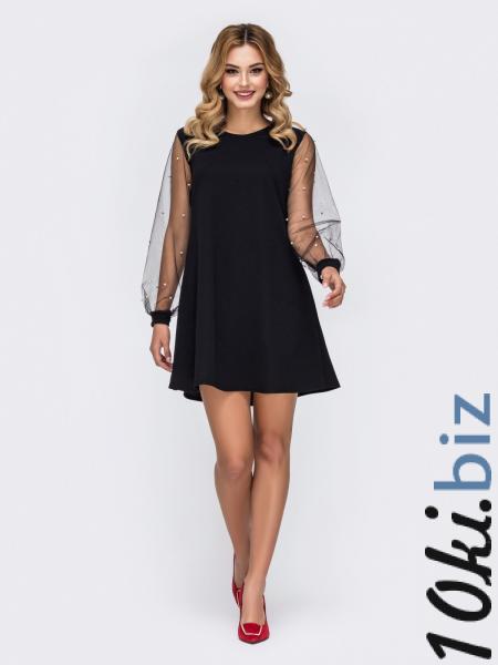Лаконичное платье А-силуэта из креп-дайвинга. Объёмные фатиновые рукава декорированы контрастными бусинами. Изделие идеально подойдёт обладательницам фигуры «груша», «прямоугольник», «песочные часы».
