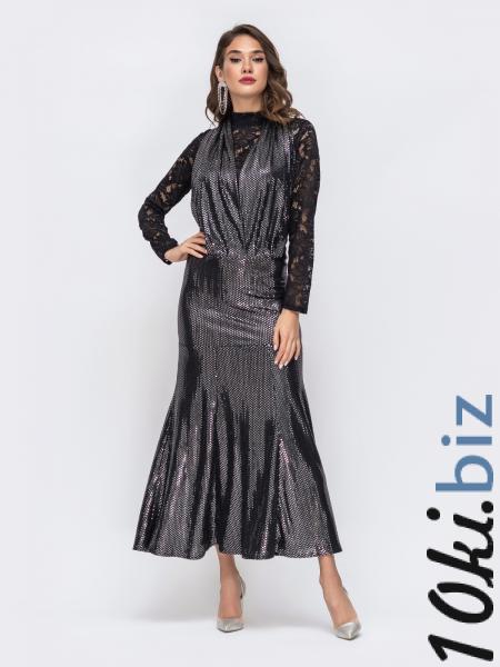 Вечернее платье-годе, расшитое пайетками. Верх изделия дополнен ажурным кружевом. Хорошо подойдёт обладательницам фигуры типа "песочные часы" и "прямоугольник".
