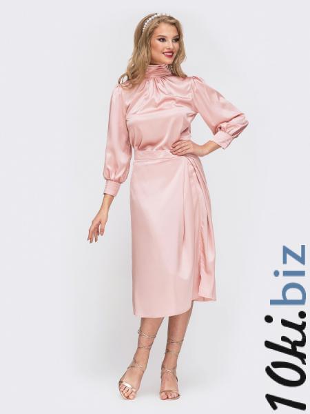 Лаконичный комплект из искусственного шелка. Закрытая блузка с воротником-стойкой, с мягкими складками по горловине. Расклешенная юбка-миди, застегивается на молнию сзади.