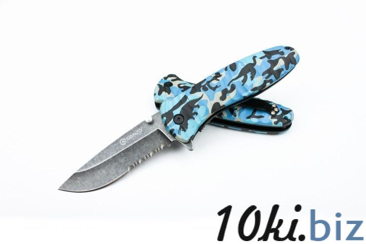 Для рыбаков и охотников, а также туристов компания Ganzo разработала еще одну модель складного ножа. Это достаточно компактный и безусловно удобный нож с полусеррейторным клинком. Та его часть, что ближе к пятке, заточена специально для работы с волокнистыми материалами, такими как ремни веревки, стропы. Передняя часть клинка заточена обыкновенным способом и подходит для широкого спектра работ.