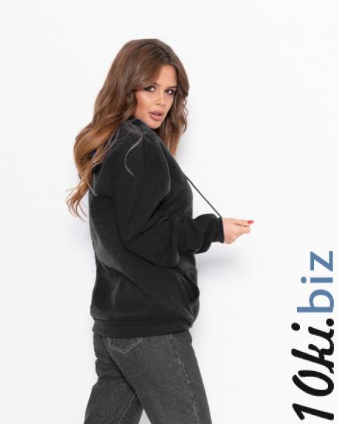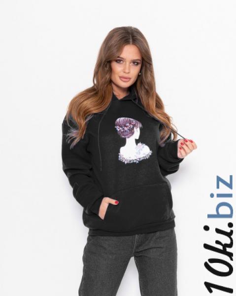Черная толстовка-худи с карманом выполненная из трикотажа на флисе. Модель прямого кроя оснащена капюшоном, длинными рукавами и манжетами на срезах. Изделие декорировано ярким принтом.