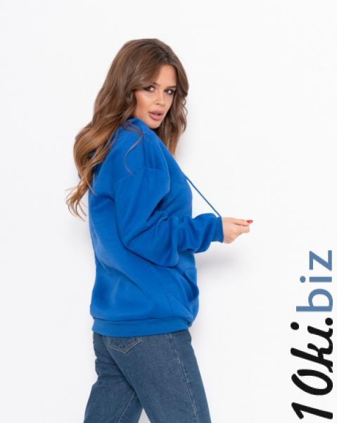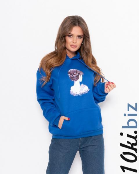 Молодежная теплая толстовка фасона худи выполненная из синего плотного трикотажа на флисовой подложке. Изделие декорировано ярким принтом и оснащено карманом-кенгуру. Модель прямого свободного кроя оснащена капюшоном, длинными рукавами и манжетами на срезах.