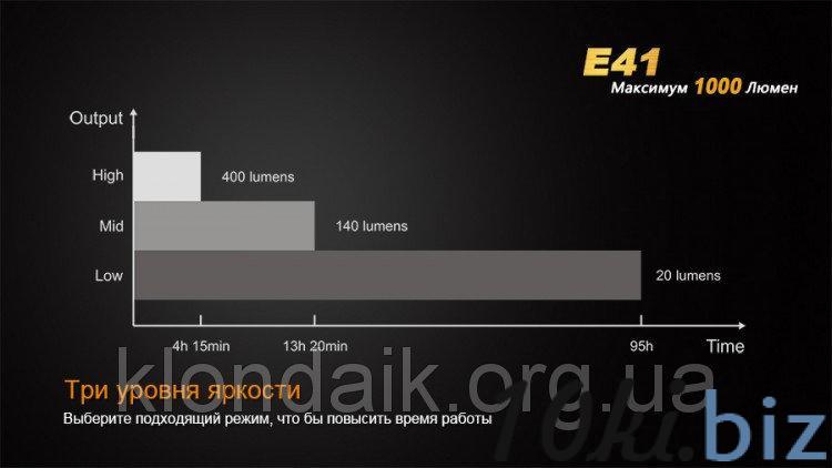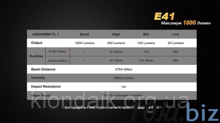 Гарантия: Компания предоставляет гарантию на фонарь Fenix E41 сроком на 5 лет с даты продажи.