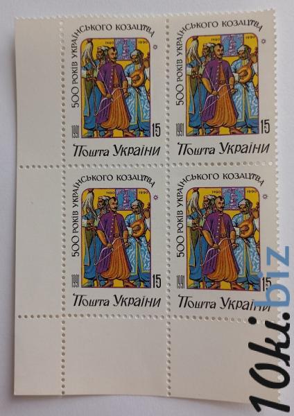 1992 № 11 угловой квартблок почтовых марок 500-лет украинского казачества Филателия в Украине