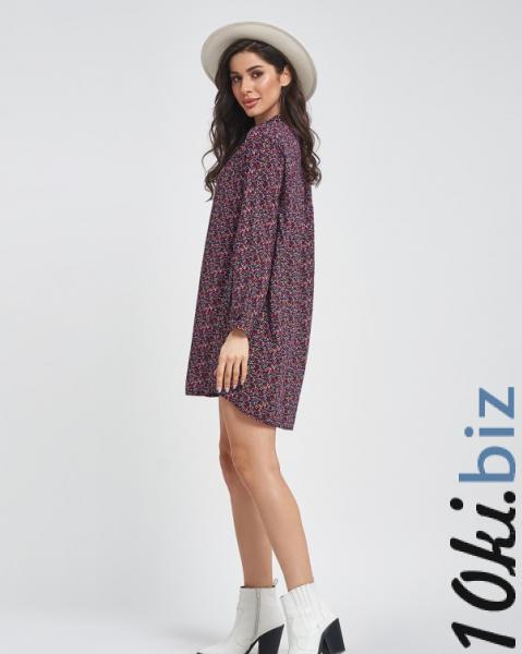 Яркое демисезонное платье-рубашка с мелким цветочным принтом выполненное из штапеля. Изделие асимметричного укороченного свободного прямого кроя с укороченной планкой на пуговицах и воротником-стойкой. Изделие оснащено длинными рукавами с манжетами.