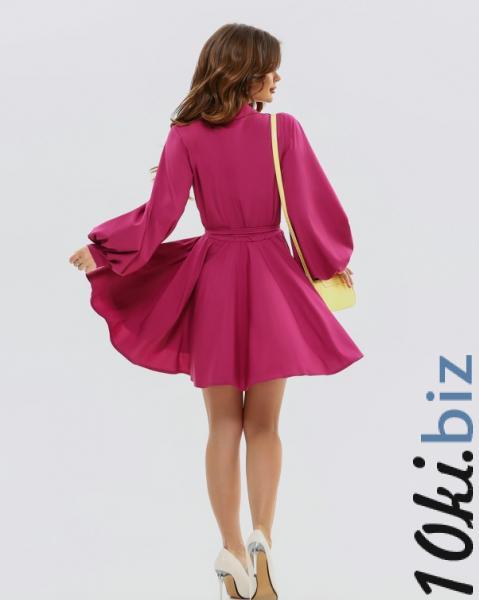 Сиреневое мини платье выполненное из софта с приталенным кроем и горловиной на запах. Модель оснащена воздушной юбкой солнце-клеш с V-образной горловиной и воротником с отворотом. Платье с длинными рукавами на манжетах и съемным сиреневым текстильным пояском.