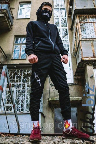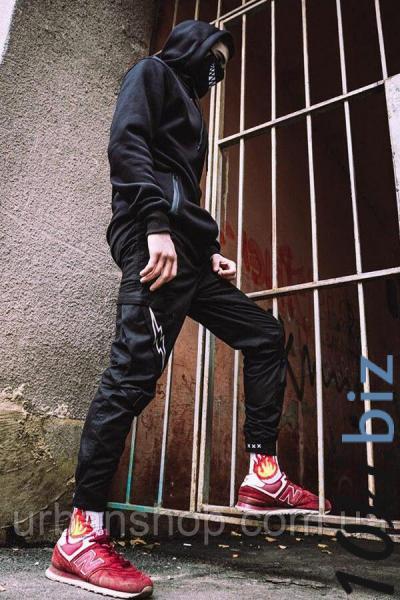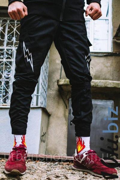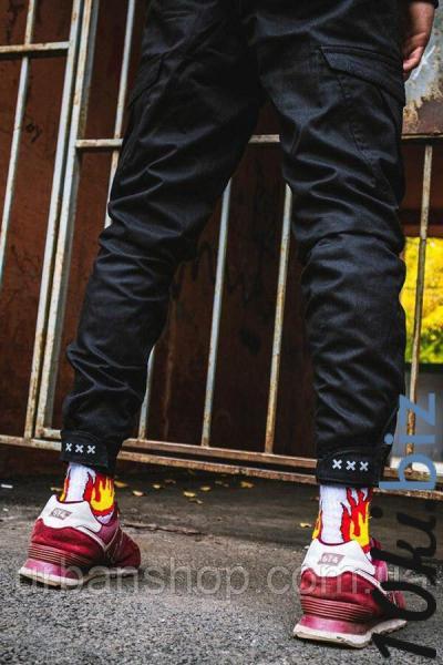 Коттоновые штаны черного цвета зауженные с манжетами Спортивные брюки мужские в Украине