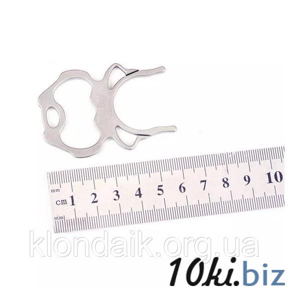 Многофункциональный инструмент выполнен из нержавеющей стали марки 2Cr13. Это прочный и надежный материал, который обеспечивает модели долгий срок эксплуатации. Изделие компактное и легкое, вес составляет 15 грамм. Длина мультитула 60 миллиметров, ширина 42 миллиметра, толщина – 2,5 миллиметра. Предназначен для открывания бутылок, также может быть подставкой для тары. Размеры экземпляра позволяют носить его в кармане или сумке, можно использовать как брелок. Интересный дизайн модели понравится любителям необычных стильных аксессуаров. Приятный нейтральный серый цвет прекрасно подойдет к любой одежде или сумке.