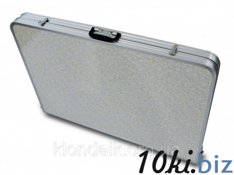 Компактный в сложенном виде, но один из самых больших в разложенном виде. Такой стол найдёт применение на отдыхе за городом, на пикнике на дачном участке, на рыбалке, а также раскладной стол может пригодиться для приёма большого количества гостей. Стол складывается пополам так, что превращается в небольшой чемоданчик.