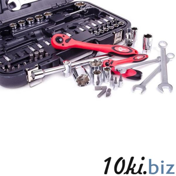 В состав данного набора входят 9 рожково-накидных ключей диаметром от 8 до 22 мм. Данные ключи сочетают в себе преимущества рожковых и накидных моделей, имеют сбалансированную рукоятку и могут быть использованы в труднодоступных местах. Кроме того, в профессиональный набор вошли 25 торцевых головок диаметром от 4 до 32 мм, 2 свечные головки, 2 воротка, 33 отверточных биты, переходники, карданчики и масса других полезных мелочей. Отдельного внимания заслуживают трещотки на 72 зубца с возможностью сброса и фиксации торцевых головок, которые помимо этого, покрыты защитным слоем из полипропилена, полностью исключающего возможность появления коррозии. Они отличаются прочностью и крайне легким весом, так как тоже изготавливаются из хром-ванадиумной стали.
