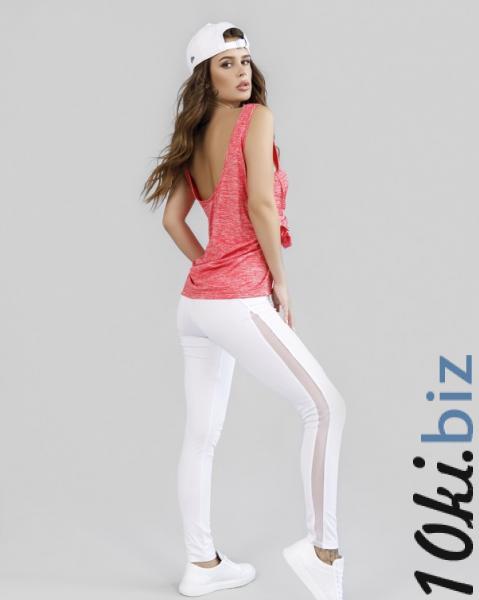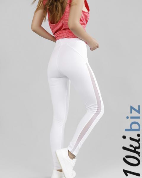 Белые эластичные спортивные леггинсы с сетчатой боковой вставкой. Модель облегающего кроя с широкой поясной резинкой.