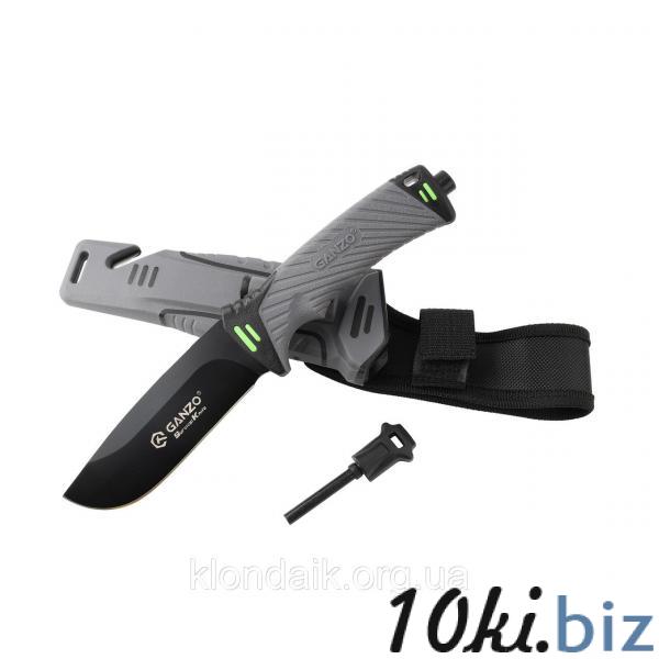 В одном стиле с рукояткой изготовлены и ножны для Ganzo G8012. Они могут крепиться на поясе или же быть убранными в рюкзак. Изготовлены ножны из пластиковых, а также нейлоновых элементов. Они полностью закрывают лезвие ножа и частично рукоятку. Также в ножны можно продеть шнур для крепления на рюкзаке и страховки от потери ножа. Со стороны клинка, в ножны встроен острый стропорез из двух перекрещенных лезвий, с помощью которого можно разрезать веревки в экстренной ситуации. Если же во время поездки наприроду понадобится подточить нож, авторы этой модели предлагают воспользоваться встроенной в ножны алмазной точилкой. Она подходит для гладко заточенного участка клинка. Еще один дополнительный аксессуар — это огниво, вынимающееся из ножен. В дополнение ко всему, в рукоятке ножа размещен стеклобой — небольшой элемент в торцевой части ручки, о предназначении которого говорит его название.